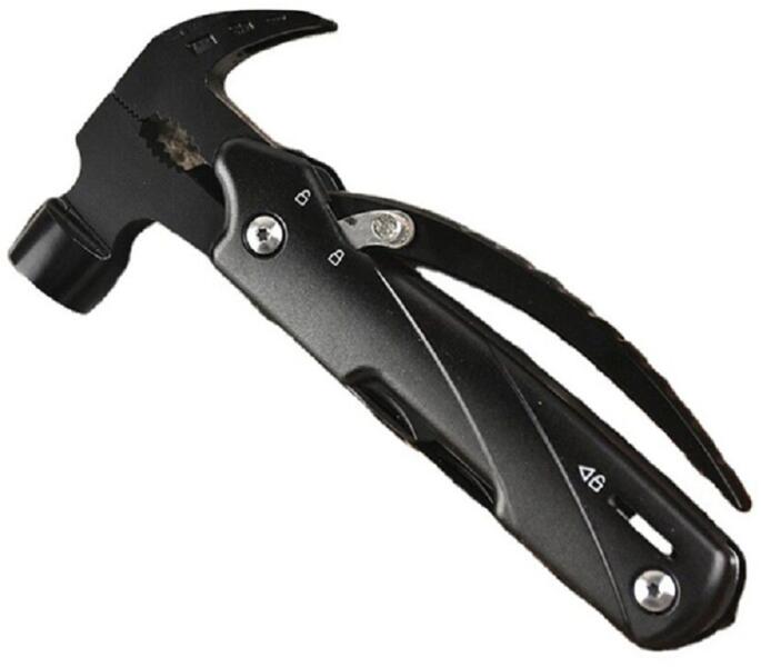 Multifunkciós túlélő kiskalapács Multifunkciós túlélő kiskalapács szuper áron. A kiskalapács kiváló minőségű rozsdamentes acélból készült, ellenáll az ütődésnek, esésnek, törésnek. Tartalmaz: kés, 2-féle fűrészkés, szögkihúzó, csillag csavarhúzó, fogó. Erős nylon tokba csomagolt, melyet az övre fűzhet. Tulajdonságok: Mérete: 14cm x 7cm Anyaga: Rozsdament