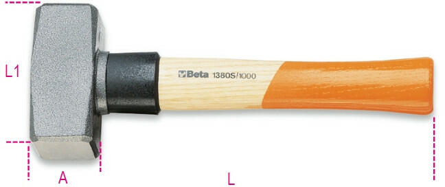 Kovácsolt, edzett acél fej Lakkozott felületű fa nyél, műanyag burkolattal Megerősített fej rögzítés, ékkel és ragasztóval rögzítve a nyélhez, biztonsági műanyag borítás a kalapács nyakánál, a nyél károsodása ellen