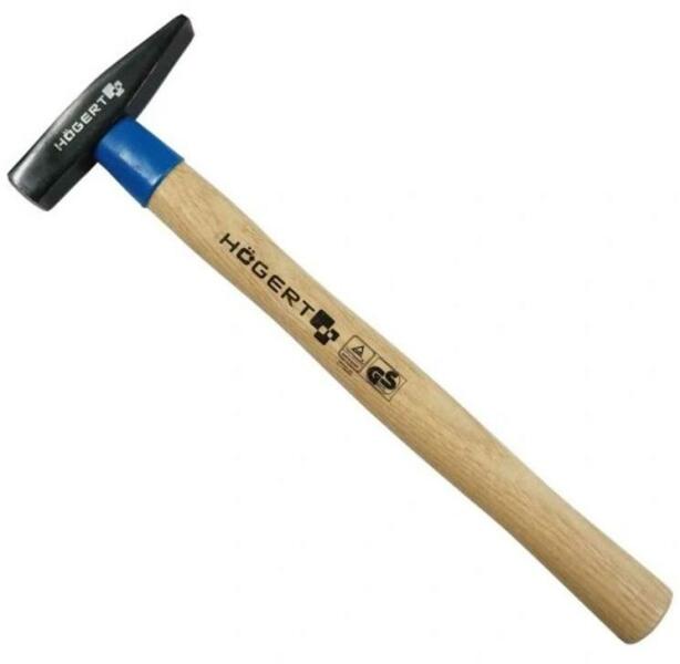 kalapács, fa nyéllel; 800g, DIN TÜV/GS Ez a lakatos kalapács a DIN 1041 és a TÜV/GS szabványnak megfelelően készült. Ékkel rögzített fejjel rendelkezik. A nyél egyenes szálú, csomó nélküli, lakozott fa, fazonosan kialakított.