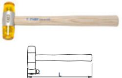 anyaga: celidor, 60-70 Shore D keménység olajálló szürkeöntvény fej lakkozott fa nyéllel lágy vagy sérülékeny anyagokhoz használható Technikai adatok: Méretek (D-L): 22-260 mm Súly: 165gr Cikkszám: 601832
