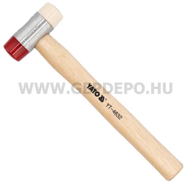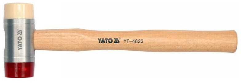 Yato PU/nylon illesztőkalapács 35 mm - 340 g 340 g-os fémlemezkalapács kétféle, 35 mm átmérőjű véggel: PU-ból (puha) és NYLON-ból (kemény). Az összekötő szár cinkötvözetből, a markolat hikkori fából készült. Teljes hossza 315 mm. A ragasztás emellett műgyantával védett. A YATO az autóműhelyek, az építőipar, általános szerelési munkák és kertészet számára