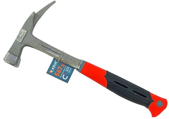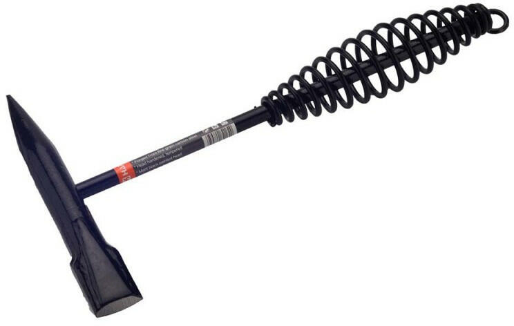 Termékleírás: - Kovácsolt acél fej. - Vésőélű és hegyes ütőfelület. - Ütéselnyelő nyélre hegesztett, rugóacél markolat. - Markola alatt akasztó kampóval.