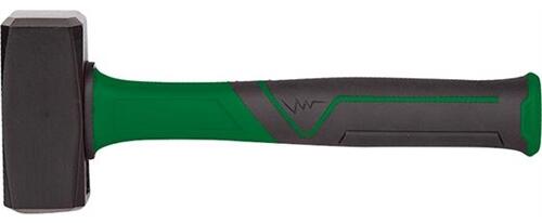 Kőtörő kalapács 2-komponensű nyéllel Nemesített acél C45, süllyesztékben kovácsolt, edzett és megeresztett Köszörült talpak Előírásszerűen letört élek Kalapácsfej a DIN 6475 szerint 2-komponensű nyél