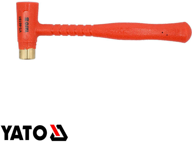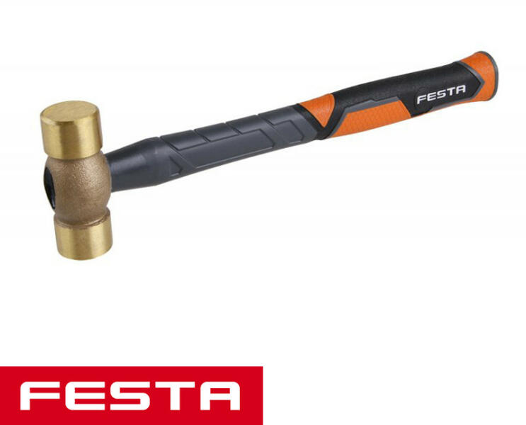 sárgaréz kalapács 500g - 30 mm üvegszálas nyéllel sárgaréz kalapács 500g - 30 mm sárgaréz ötőfelületek, átmérő 30 mm Üvegszál erősítésű nyél kétkomponensű TPR markolattal - csúszásmentes és kényelmes fogás.