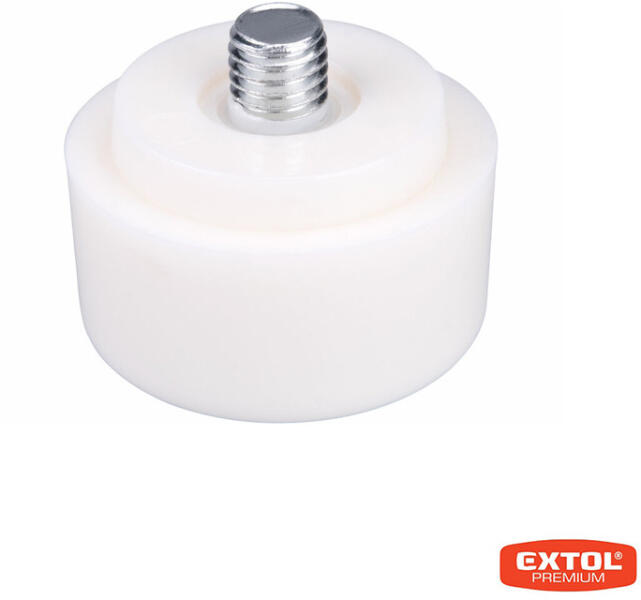 Cserélhető ütőfej 40 mm Nagyon kemény - 95 o shore A keménység Cserélhető fejes biztonsági kalapácshoz M8 menet Cserélhető ütőfej, fehér Átmérő: 40 mm Cserélhető fejes biztonsági kalapácshoz M8 menettel A következő kalapácshoz ajánlott: Extol Premium 8811121