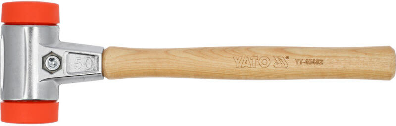YATO YT-45482 műanyag kalapács hikkori nyéllel és két fém burkolatban rögzített ütőfejjel. Az UPE anyag használata nagyon nagy tartósságot, kopásállóságot és sok vegyszerállóságot biztosít. hickory fogantyú fejátmérő: 50 mm fejhossz: 115 mm teljes hossz: 385 mm súlya: 830 g hozzáillő pótelemek: YT-45487 tengely, YT-45492 ütőfejek