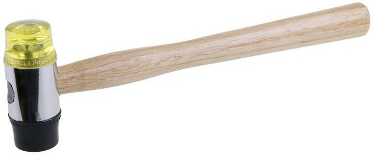 Bádogos kalapács - Hengeres Ultra magas molekulatömegű politénből készült fej, nagy erejű ütésekhez. Tömör fanyéllel.
