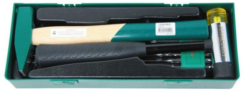 Termék leírás Jonnesway kalapács készlet tálcás 13 részes 370 x 140 x 50 mm Készlet tartalma lakatos kalapács 500 g 320 mm fa nyéllel műanyag - gumi kalapács: 750 g 300 mm 6 részes kiütő készlet: Ø 2 mm x 8,0 mm x 115 mm Ø 3 mm x 8,0 mm x 125 mm Ø 4 mm x 9,5 mm x 150 mm Ø 5 mm x 9,5 mm x 165 mm Ø 6 mm x 12,7 mm x 180 mm Ø 8 mm x 12,7 mm x 180 mm 5 részes vágó, kiütő, p