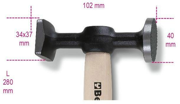 Beta karosszéria kalapács lapos, kerek rovátkás és sima négyszög fejjel, fanyéllel Kerek fej átmérője: 32 mm, négyszögletes fej átmérője: 25 mm, fej hossza: 100 m, teljes hossz: 280 mm