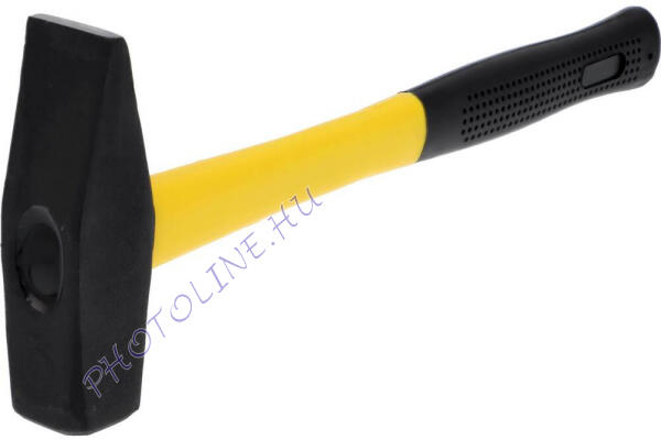 kalapács, üvegszálas nyéllel, DIN 1041/GS; 1500g Az üvegszálból készült nyél csillapítja az ütések erősségét. . A kalapács feje kitűnő minőségű acélból készült, kovácsolt. Kicsúszás ellen a végén kiszélesedő nyél. Csúszásgátló felületkezeléssel rendelkezik az üvegszálas kalapács nyele.