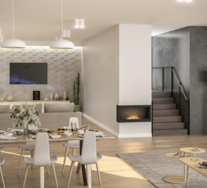 Romotop SONE 05 A Kerámia KandallókályhaA Romotop kandallókályhák meghatározó jellemzője a letisztult, modern vonalvezetés. A speciális samott anyaggal bélelt égéstér megvédi a kályhát a vetemedéstől, valamint javítja az égési folyamat hatékonyságát. A lángok a világos színű égőtér faláról visszatükröződve teljes fényükben ragyoghatnak, a látvány még akko