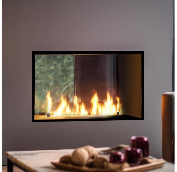 Egyszerű, modern biokandalló, amelyegy előre elkészített fülkébe helyezhető. A biokandalló méretei lehetővé teszik, hogy akár egy kis helyiségben is elhelyezhető legyen. A látható tűz rendkívüli vizuális hatást biztosít. A dekoratív funkció mellett ezek a kandallók hőt is termelnek, amely már néhány perc után érezhető a helyiségben. A biokandalló nem igényel kü