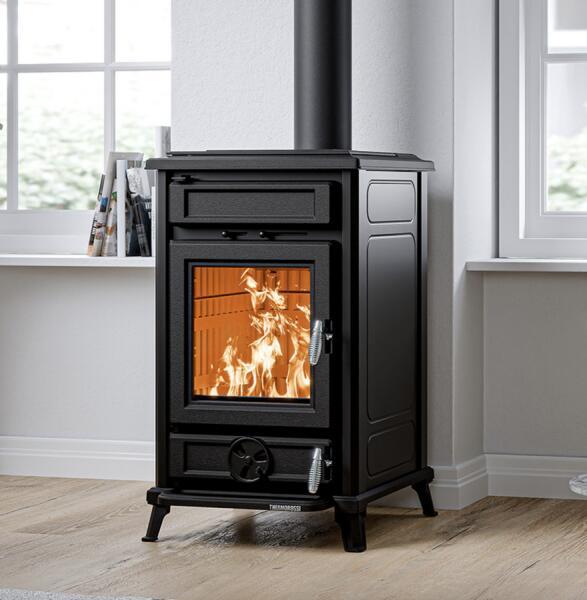 Az elegáns fekete Thermorossi Agora kandallókályha tökéletesen ötvözi a hagyományos fűtési módszereket a modern dizájnnal és kiemelkedő közel 88%-os hatásfokával. Ideális választás azoknak a háztulajdonosoknak, akik energiahatékony és környezetbarát fűtési megoldást keresnek. 12,3 kW névleges hőteljesítményével és fűtési kapacitásával tökéletesen alkalmas na