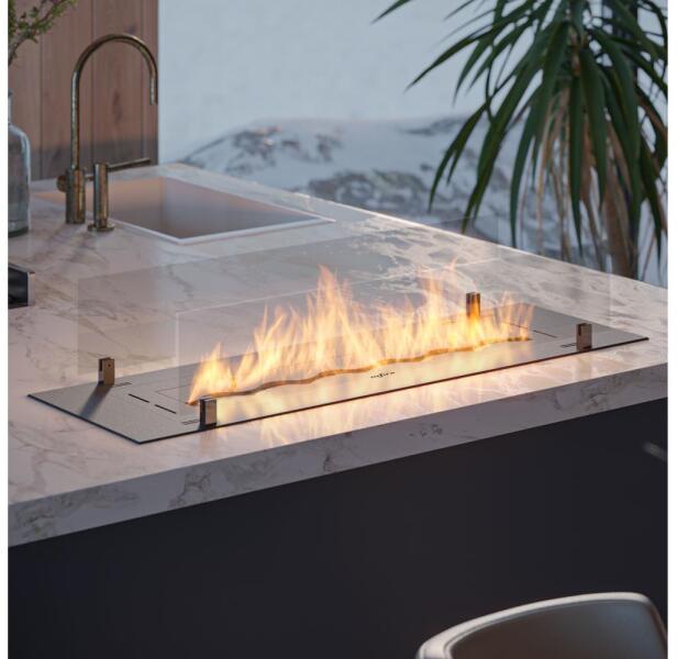 Egyszerű, modern biokandalló, amelyegy előre elkészített fülkébe helyezhető. A biokandalló méretei lehetővé teszik, hogy akár egy kis helyiségben is elhelyezhető legyen. A látható tűz rendkívüli vizuális hatást biztosít. A dekoratív funkció mellett ezek a kandallók hőt is termelnek, amely már néhány perc után érezhető a helyiségben. A biokandalló nem igényel kü