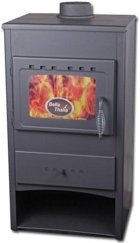 A Bella Thalia NERA kályha fával és szénbrikettel egyaránt fűthető. Névleges teljesítménye 6,5 kW, fűtőhatékonysága pedig 75 %. A felső füstcső csatlakozási átmérője 120 mm, segítségével 40 – 100 m2-es szoba fűthető be. Bélelt, tűzálló fallal ellátva Acéllemezes kialakítás Tüzelő tér alatti tárolóval Remek fűtési hatékonyság: 75 % Fűtő hatékonyság: