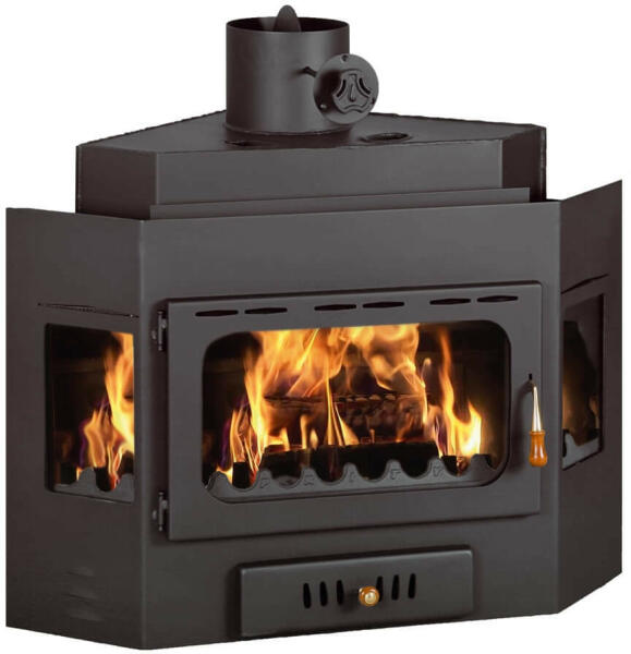 Sarokba építhető helytakarékos, exkluzív nagy lemez üvegajtóval + 2 oldalon üvegezett felülettel kialakított, vízteres kandalló betét. Nyitott és zárt rendszere is köthető. Vízköpenyes kialakítású, nem csőkígyós! Vízköpeny űrtartalma: AW 16: 30 L. Optimálisan fűthető terület: 80-110 m 2 Termékismertető Vízoldali teljesítmény: 16 kW vízoldali + 5 kW légfűtés