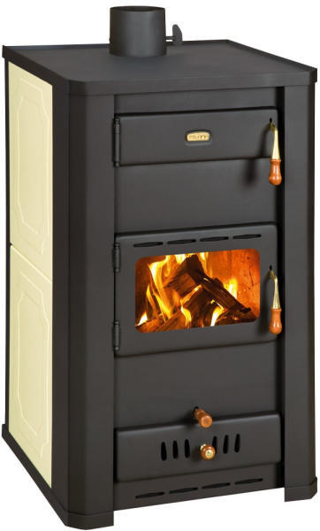 Prity W17 vízteres kandalló kályha Max. teljesítmény: 23 kw. Vízoldali telj. :17 kw. = 7,8 db 1000x600x22 radiátor=95 m2. Légfűtés 6 kw. =30 m2. Össz. befűthető alapterület max. . kb. 125 m2 ( a lakó ingatlan külső falazatának gyengébb hőszigetelése következtében ez az adat kisebb lehet)Hatékonyság: 87%. MAX. ÜZEMI NYOMÁS 2 BAR. Fűtővíz mennyiség: 22 Lit. Méretek ab