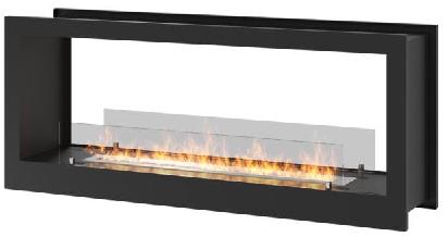 Akár természetes kő, fém vagy akár vakolat - ezzel a kandallóbetéttel az előlapot tetszése szerint alakíthatja ki. Ily módon a kandalló teljesen hozzáigazítható otthona berendezéséhez. A nagyméretű elülső üveg felfelé nyitható, és tökéletes rálátást biztosít a lángokra. Az üveget a tisztításhoz oldalra is lehajthatja. A keret nélküli üveg üdítően modernnek