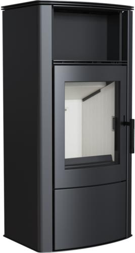 alkalmas alacsony energia igényű házakba masszív, tartós, öntöttvas rács különálló hamutartó a kényelmesebb tisztítás érdekében szilárd, masszív kályhatest matt fekete színben samott tűztér magas hatásfok és alacsony fogyasztás felső vagy a hátsó füstcső csatlakozási lehetőség központi légbeömlő nyílás (átmérő: 120 mm) nagyméretű modern, hajlított üv