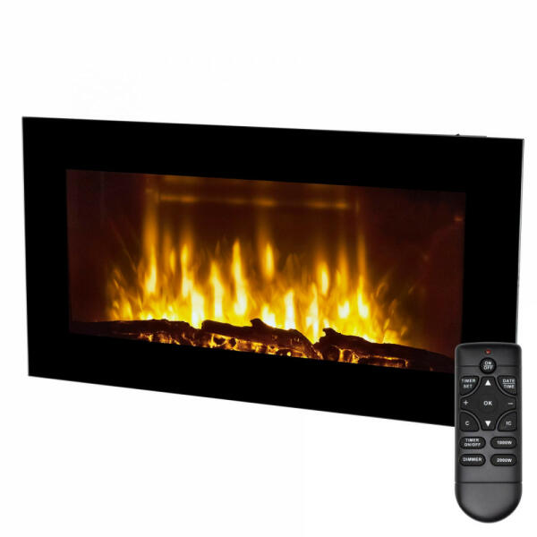 Elektromos fali kandalló FKK 23 szabályozható fényerejű, függetlenül kapcsolható láng-effekt edzett síküveg előlap beépített energiatakarékos LED fényforrás (12 W) elektronikus termosztát heti program adaptív bekapcsolás szabályozás 2 fűtési fokozat: 1000 W / 2000 W felső kifújási pont minden funkció távirányítható túlmelegedés elleni védelem maximális teljesít