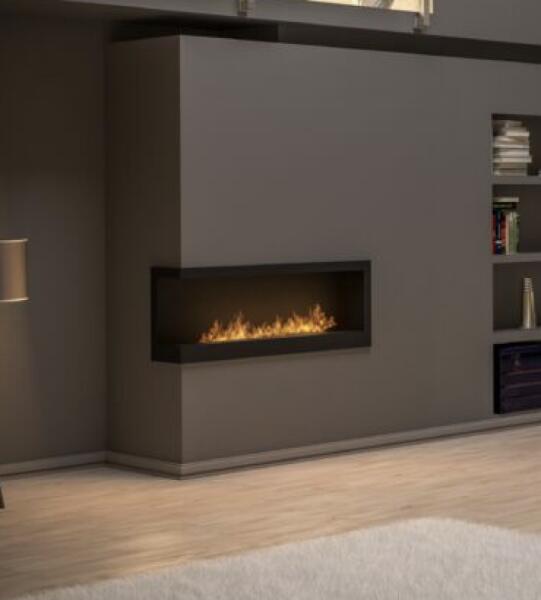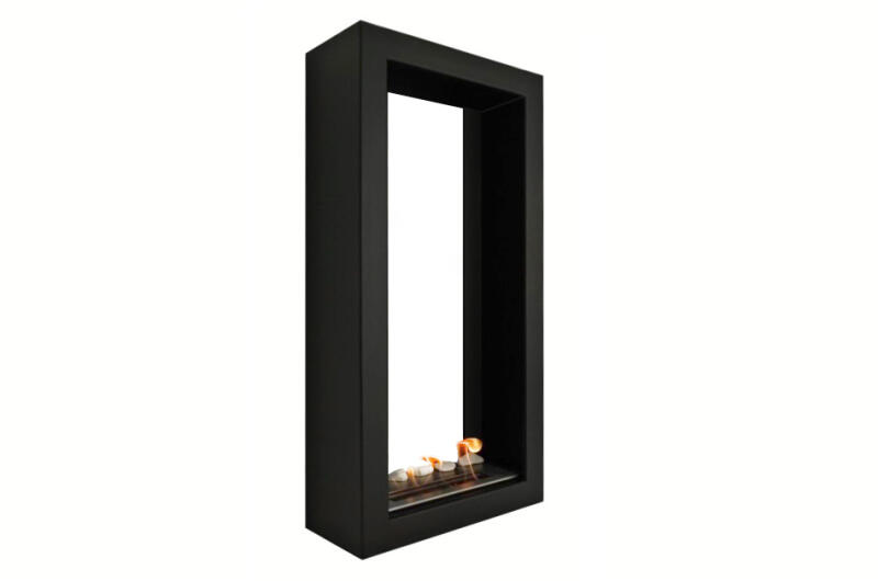 Egy egyszerű, modern biokandalló, amelyet arra terveztek, hogy egy kész résbe beépíthető legyen. A sarokmodell nyitott bal oldallal. A kandalló kerettel van felszerelve, amely túlnyúlik a tűztér körvonalain, és túlnyúlik a falon. A látható tűz rendkívüli vizuális hatást biztosít. A biokandallóhoz nincs szükség speciális kéményszerelésre, így bárhol elhelyezheti. T