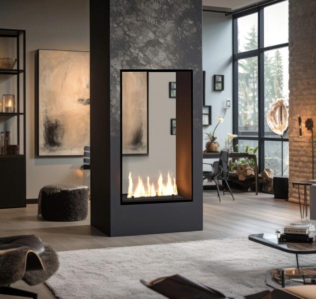 A 2Side 1600 Slim vertical biokandalló elegáns és modern belsőépítészeti elem, mely függőleges formájával és keskeny fekete keretével tűnik ki. Falba süllyeszthető, lehetővé téve, hogy két oldalról élvezhessük a tűz látványát és a kandalló melegét. Ez a modell különösen ajánlott olyan helyiségekbe, ahol egy egyszerű térelválasztó falat szeretnénk különlege