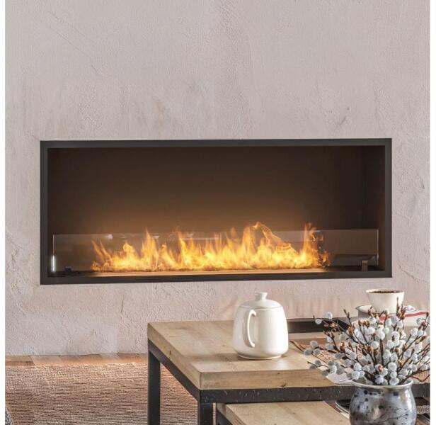 Az 1200 mm-es beépíthető etanol tartály lehetőséget kínál arra, hogy egy hosszú és hatékony tűzvonalat építsen be belső terébe. Az egyszerű kivágás és a tartályt kitöltő nedvszívó szál lehetővé teszi, hogy a tűz egyenletesen és stabilan égjen az égési idő alatt. Az égő légtelenítő rendszerrel rendelkezik, amely megakadályozza a nyomás felhalmozódását az
