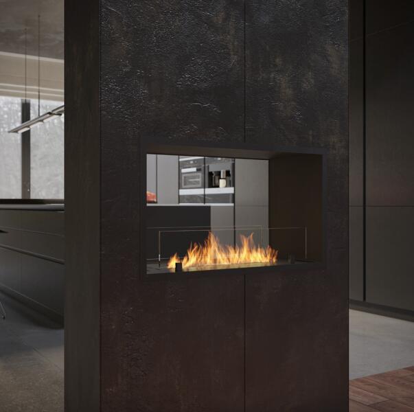 A 2Side 800 Slim biokandalló elegáns és modern belsőépítészeti elem, mely függőleges formájával és keskeny fekete keretével tűnik ki. Falba süllyeszthető, lehetővé téve, hogy két oldalról élvezhessük a tűz látványát és a kandalló melegét. Ez a modell különösen ajánlott olyan helyiségekbe, ahol egy egyszerű térelválasztó falat szeretnénk különlegessé és e