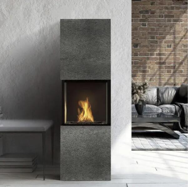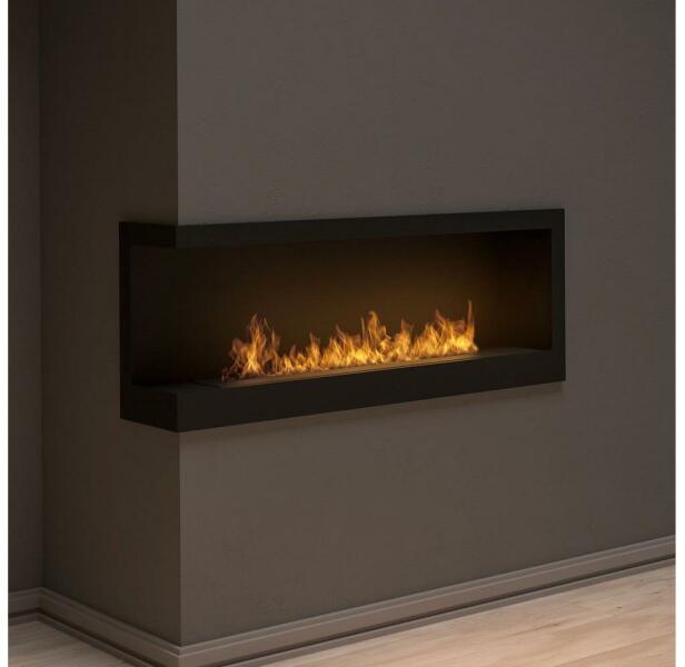 Egyszerű, modern biokandalló, amelyet úgy terveztek, hogy egy előkészített fülkébe szerelhető legyen. Sarokmodell nyitott jobb oldallal. A biokandalló méretei lehetővé teszik, hogy akár egy kis helyiségben is elhelyezhető legyen. A látható tűz rendkívüli vizuális hatást biztosít. A dekoratív funkció mellett ezek a kandallók hőt is termelnek, amely már néhány perc ut