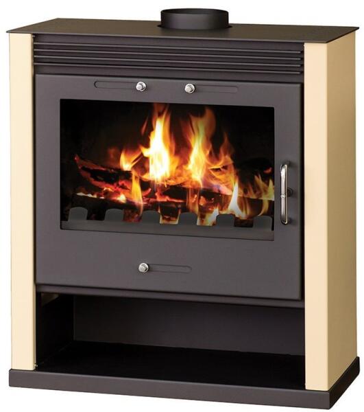 Kandallókályha előnyei: alkalmas alacsony energia igényű házakba masszív, tartós, öntöttvas rács különálló hamutartó a kényelmesebb tisztítás érdekében szilárd, masszív kályhatest matt fekete színben samott tűztér modern sík, ajtó keret elé függesztett üveg rozsdamentes acél kiegészítők magas hatásfok és alacsony fogyasztás felső vagy a hátsó füstcső csa