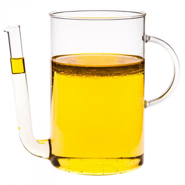 Zsírelválasztó kanna XL, 1,2 liter. Konyhában keletkező ketfázisú folyadékok szétválasztására (pld. zsír, olaj, víz). A pórusmentes üvegfelületnek köszönhetően használata higénikus. Semmilyen összetevőt (alkotó vegyületet) nem ad ki magából, így allergiások számára is megfelelő. Tisztítása egyszerű, mosogatógéppel is lehetséges. Ha a véletlen mégis közbesz