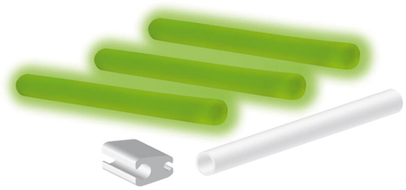 Az éjszakai horgászat nélkülözhetetlen kelléke a világító patron. A csomagban a 3 db patron mellett 3 db rögzítő cső van, amivel a spiccre tudjuk azokat rögzíteni.