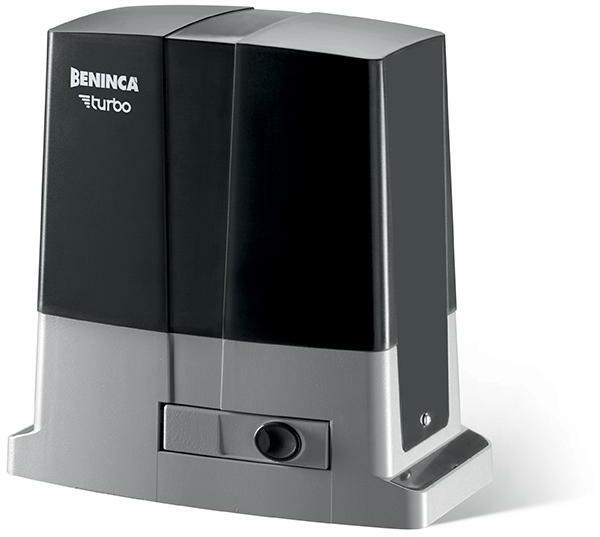 Beninca BULL624TURBO elektromos kapunyitó motor tolókapukhoz és úszókapukhoz. Lakossági felhasználásra ideális elektromos kapunyitó szett, amely akár 500 kg-os kapusúlyig képes elmozgatni tolókaput és úszókaput egyaránt. A termék csak a képen látható motort, beépített vezérlést, és a hozzátartozó talpat tartalmazza, lefogató csavarokkal és kioldó kulcsokkal Amennyib