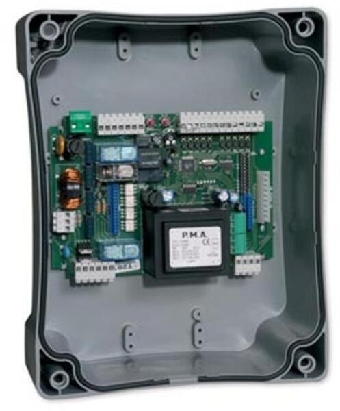 Telcoma kétmotoros 230V-os digitális vezérlés. Funkciók: lassítás, kiskapu , társasház, kertvilágítás, áthaladás érzékelés, végállás, elektromos fék. 230V-os Telcoma 2 motoros digitális vezérlés nyíló és tolókapukhoz Tulajdonságok: egyszerű programozás öntanuló motoridő beállítás elektromos nyomaték szabályzó encoder kisk apu funkció kertvilágítás társa