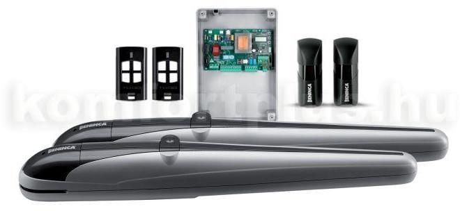 Beninca KIT-BOB30M kapumozgató szett kétszárnyas kapukhoz - max 3m/szárny - max 200kg/szárny - Végállás előtti lassítás - Gyalogos bejáró funkció - Áthaladás érzékelés A készlet tartalma: - 2db BOB30M csavarorsós motor (oldalfüggetlen) - 1db ECO 2 vezérlés, beépített 433MHz-es rádióvevővel, - 1 pár PUPILLA fotocella - 2db TO. GO4 4 csatornás, 433Mhz-es ugrókódos ad