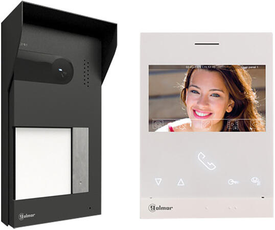 Golmar színes komplett kaputelefon szettA szett főbb jellemzői 4.3 hüvelykes kapacitív képernyő. Felületre szerelhető monitor. Jól hallható hangszórók. Hangkommunikáció, videó és titkos ajtónyitás. Video-spy funkciók, automatikus indítás, ne zavarjanak mód. Interkom funkció más beltéri egységekkel, külön-külön is. Választható csengőhangok. Csatlakoztatható küls