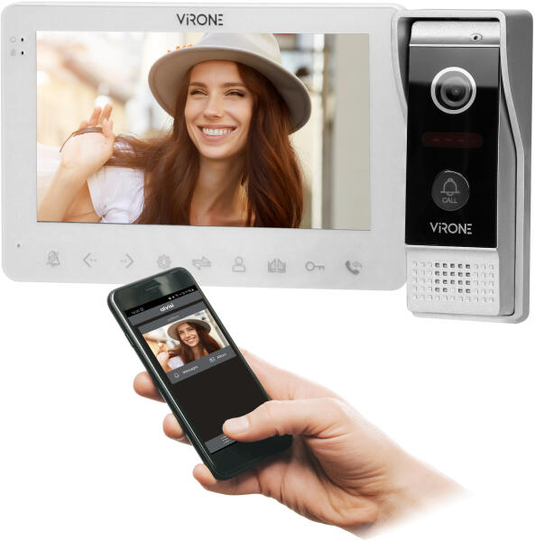 A VIFAR fehér videó kaputelefon egy többszínű 7"-os LCD-monitor fehér kerettel és egy kültéri kamerapanel hívógombbal. A beltéri és kültéri egységek közötti kommunikációhoz nincs szükség kézibeszélőre. A kiegészítő infravörös diódás megvilágítás tiszta éjszakai látást tesz lehetővé. A készlet Micro SD-kártya foglalattal van felszerelve, amely lehetővé te