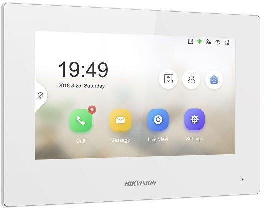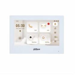 Fehér beltéri monitor IP állomás, 7-os színes TFT LCD kijelző, felbontás 1024 × 600 kapacitív érintőképernyő, WIFI és 10M/100M Ethernet csatlakozás, max. 32 Gb kártya foglalat, 12VDC vagy PoE táplálás, 8 érzékelő bemenet és 2 relé kimenet.