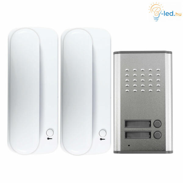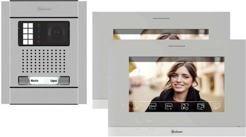 - Kétlakásos video kaputelefon készlet. - G2+ kétvezetékes szerelhetőség. Beltéri egység:- 7 TFT érintőképernyős kijelző. - Felületre szerelhető. - Nagy teljesítményű hangszórók. - Audio, video és ajtónyitás folyamatok titkosítása. - Megfigyelő funkció, ne zavarj funkció. - Interkom funkció más beltéri egységekkel. - Választható csengőhangok. - Kimenet külső h