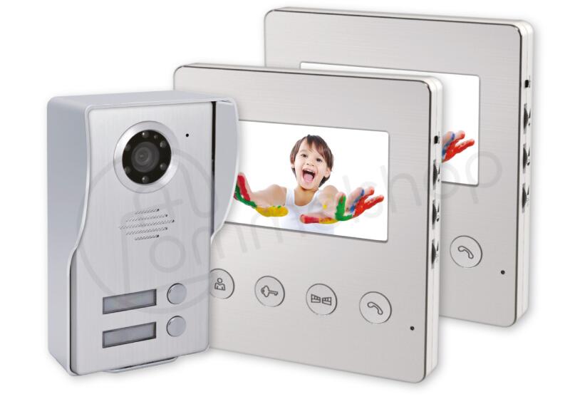 Video kaputelefon, színes, 2 lakásos, 4,3 colos kijelző, 16 csengőhang, 2 kapunyitó gomb, IP44-es kültéri kamera, éjjellátó funkció