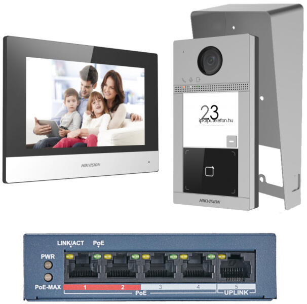Könnyen telepíthető, 1 lakásos IP kaputelefon, fekete/szürke beltérivel Két zár vezérlését lehetővé tevő, vandálbiztos 2 Megapixeles kamerával rendelkező kültéri egységgel szerelt IP-s kaputelefon rendszer. A szettben egy 7"-os, sok funkcióval ellátott érintőképernyő és egy az adat és áramellátást biztosító PoE switch is belekerült. Mobiltelefonos átjelzés, mini