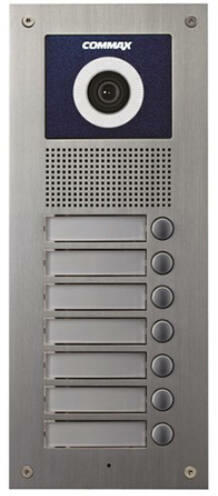 - 7 lakásos video kaputelefon kültéri egység. - 1/4" CMOS. - Fényérzékenység: 0.01Lux. - Horizontális látószög: 75º. - Vertikális látószög: 55º. - LED világítás. - Videó szabvány: NTSC/PAL. - 7 nyomógombos kivitel. - 4 vezetékes. - Alumínium készülékház. - Tápellátás: 12VDC, 1A. - Méret: 130mm x 250mm x 10mm. - CE minősítés. 7 lakásos video kaputelefon, 1/4 CM