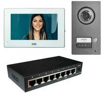 - Egy lakásos video kaputelefon készlet. - G2+ kétvezetékes szerelhetőség. Beltéri egység:- 7 TFT érintőképernyős kijelző. - Felületre szerelhető. - Nagy teljesítményű hangszórók. - Audio, video és ajtónyitás folyamatok titkosítása. - Megfigyelő funkció, ne zavarj funkció. - Interkom funkció más beltéri egységekkel. - Választható csengőhangok. - Kimenet külső h