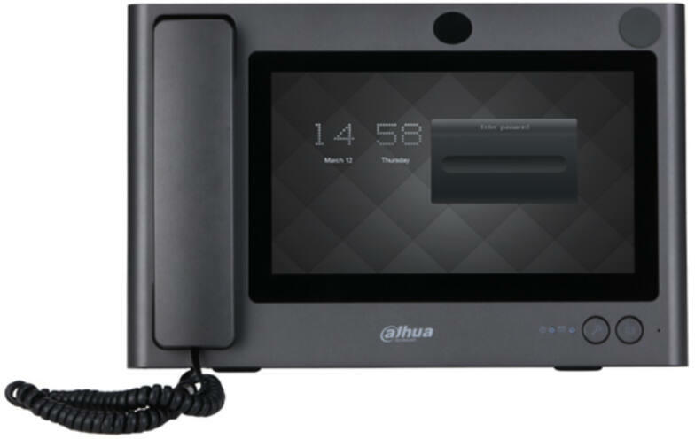 - Video kaputelefon beltéri egység. - 10 TFT kapacitív LCD kijelző. - Felbontás: 1024 x 600. - Beágyazott processzor. - Beágyazott Linux operációs rendszer. - 4 csatornás, 720P megjelenítés, akár osztott képernyőn is. - Beépített hangszóró, kézibeszélő. - Audio tömörítés: G. 711a, G. 711u, PCM. - 2 x audio bemenet. - 1 x HDMI csatlakozás. - Hálózat: 1 x RJ45, 100/1000