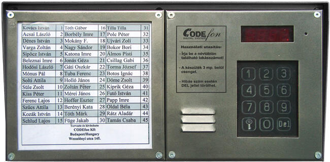 Digitális kaputelefon központ max. 255 lakáshoz 3 oszlopos névtáblával, proximity olvasóvalA központ főbb jellemzői Mikroprocesszoros vezérlő elektronika. Optikai szenzoros, érintőbillentyűzet. Beépített 125 kHz-es EM proximity olvasó. Kompatibilis a SOYAL EM 125 kHz-es proximity kártyákkal. 4 db hétszegmenses LED kijelző. Maximum 255 lakáskészülék csatlakoztatható. 2 ve