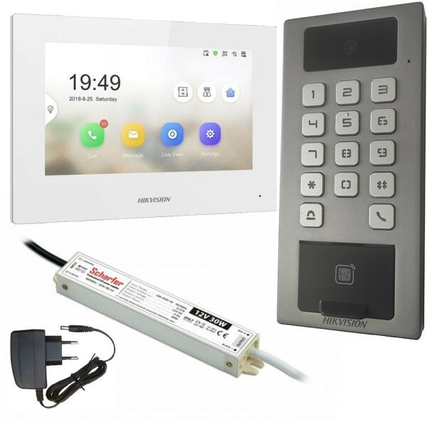 Kódzáras, újjnyomatos, kártyaolvasós IP kaputelefon szett DS-K1T502 kültéri egység + kültéri tápegység DS-KH6320-WTE1-W Wifi-s beltéri egység 12V DC tápegység (Beltéri egységhez) 1 zár vezérlése Mobiltelefonos elérés Bővíthető több beltéri egységgel, akár többlakásos használatban is A legújabb Hikvision kaputelefon egy masszív, fém házba épített eszköz, amel