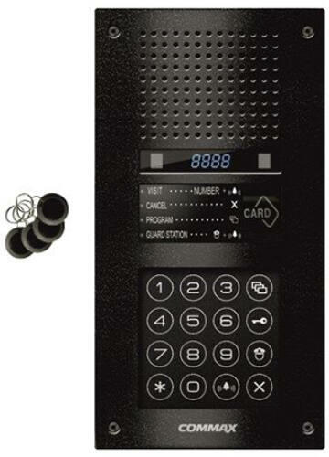 - Video kaputelefon kültéri egység. - FND kijelző. - Színes CMOS. - Fényérzékenység: 3Lux. - Vízszintes látószög: 47º- Függőleges látószög: 34º. - Beléptetés PIN kóddal vagy RFID kártyával (13.56MHz). - Optikai szenzoros érintőbillentyűzet. - UTP Cat. 5e vezetékes. - LED háttérvilágítás. - Vandálbiztos, alumínium készülékház. - Tápellátás: 12VDC, 1A. - M