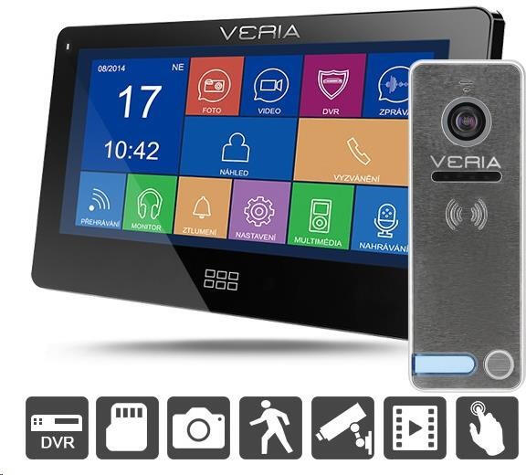 VERIA 7077C és VERIA 230 videotelefon-készülékModern és nagy teljesítményű videotelefon, amely kényelmet és biztonságot nyújt Önnek. VERIA 7077C - Monitor7" ultravékony monitor teljes érintőképernyővel és intuitív vezérléssel. Kihangosító az egyszerű kihangosított kommunikációhoz. Mozgásérzékeléssel és külső CCTV-kamerák csatlakoztatásának támogatásával ren