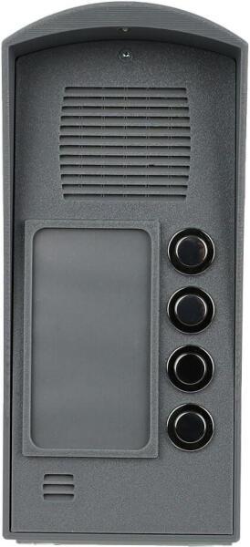 - Video kaputelefon kültéri egység. - 2 lakás csörgetésére alkalmas. - Kamera vízszintes látószög: 75°. - Kamera függőleges látószög: 55°. - Beépített fehérfényű LED. - Minimum megvilágítás: 0.1Lux. - 4 vezetékes bekötés. - Működési hőmérséklet: -20°C - +40°C. - Tápfeszültség: 12VDC. - Áramfelvétel: 1A. - Méret: 130mm x 246mm x 50mm. - CE minősítés. Vi