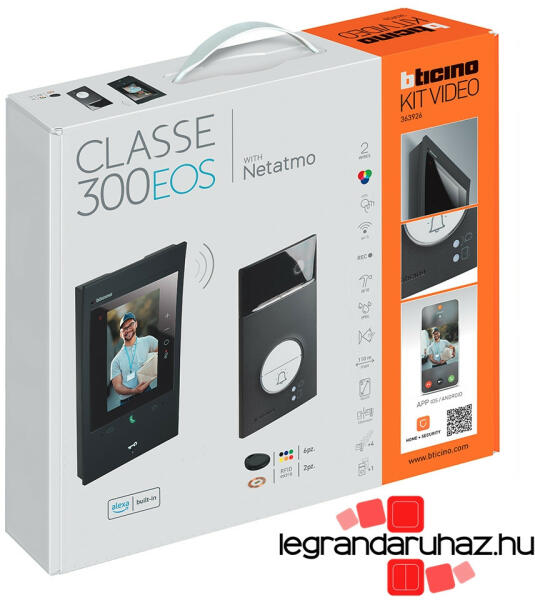 PROFESSIONAL videó kaputelefon szett 2 vezetékes (SCS busz) LINEA 3000 + CLASSE 300EOS Teljes, egylakásos kiszerelés Egyszerűen bővíthető kétcsalásos rendszerré. Szett tartalma, jellemzői: LINEA 3000 kaputábla (BT-343093), fekete CLASSE 300EOS beltéri egység fekete (BT-344884) moduláris BUS/SCS tápegység (BT-346050) kiegészítő relé kaputáblához (BT-346250) proximity tag sze